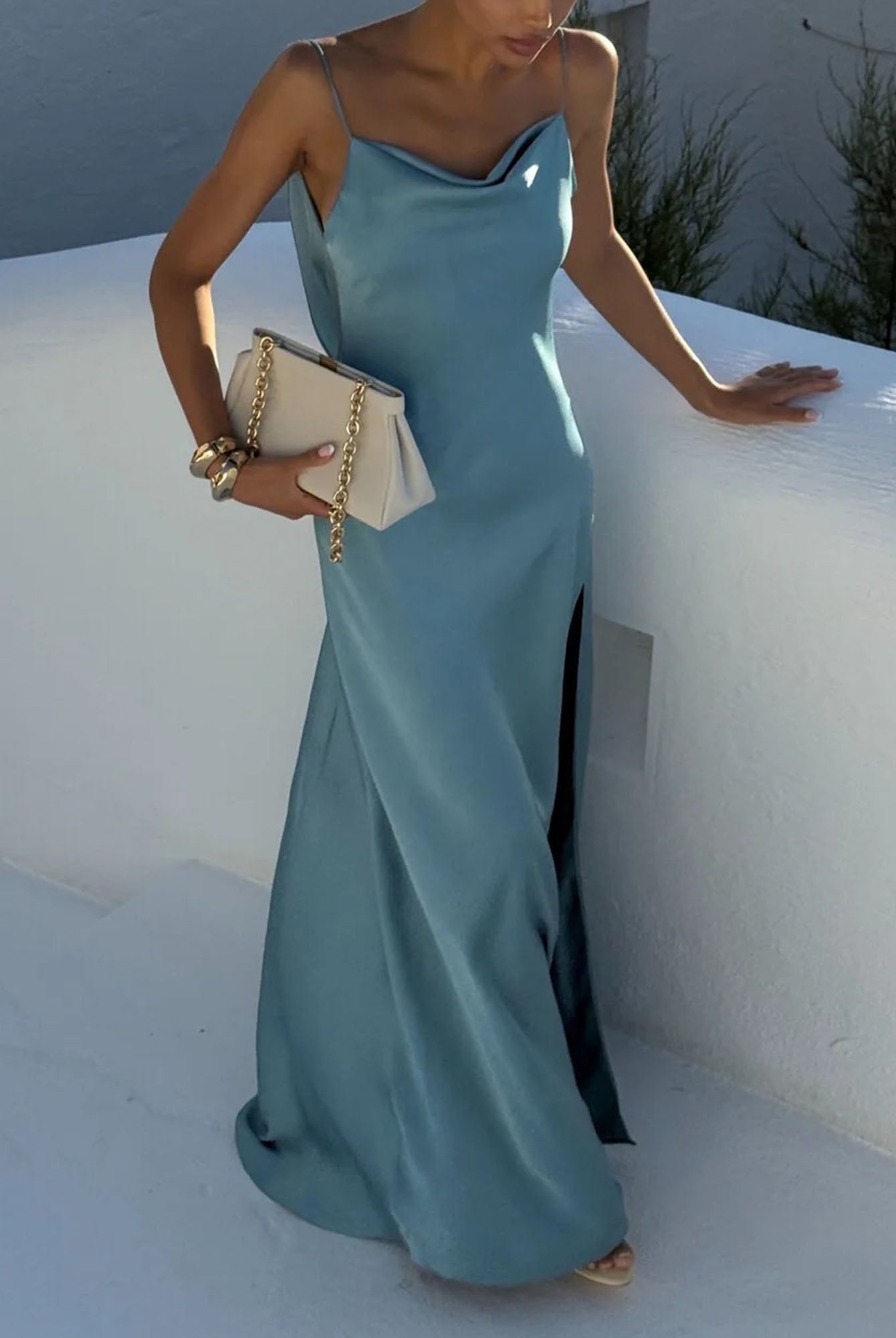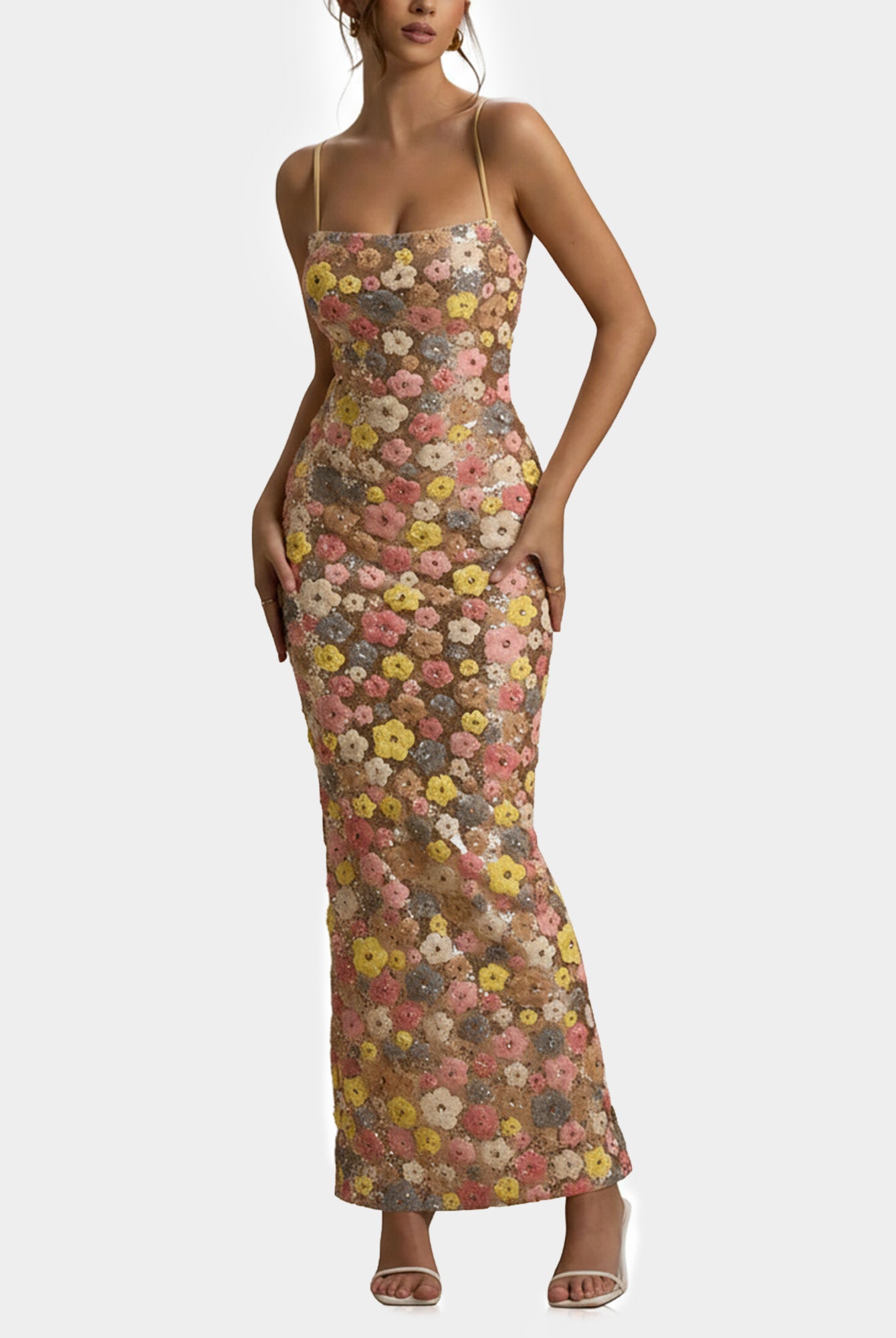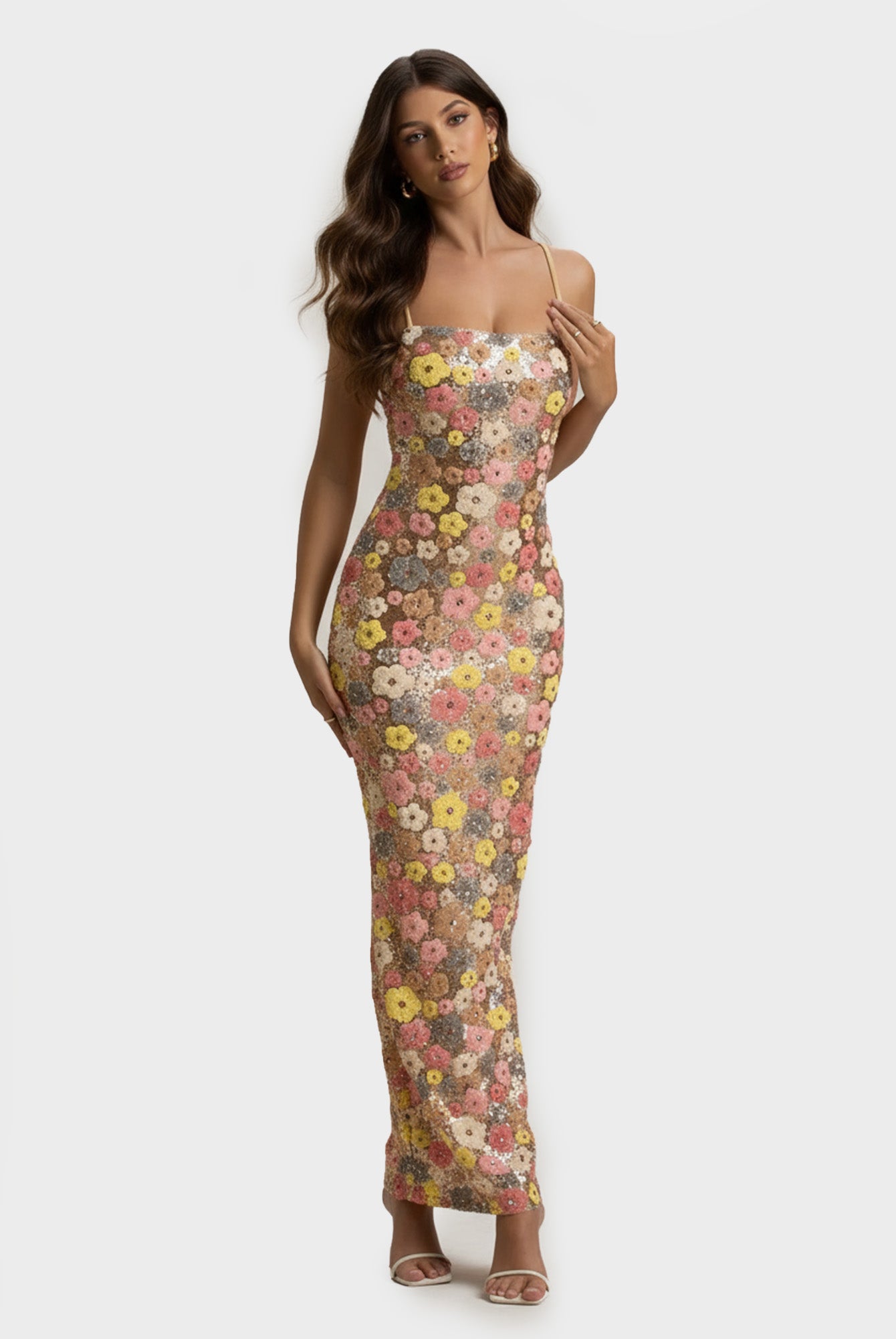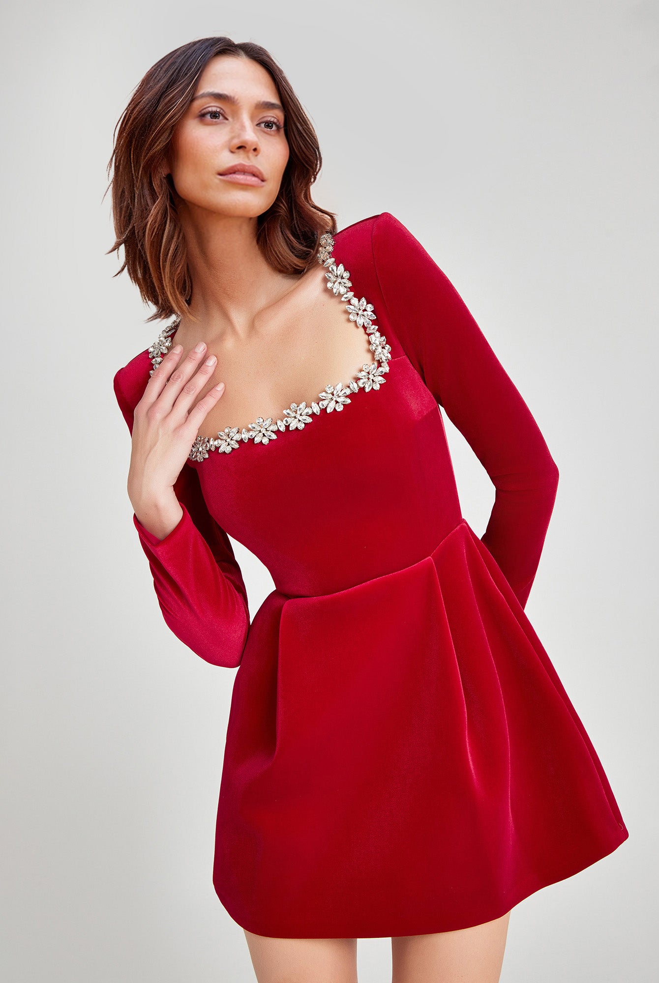 Dress with Beaded Square Neckline