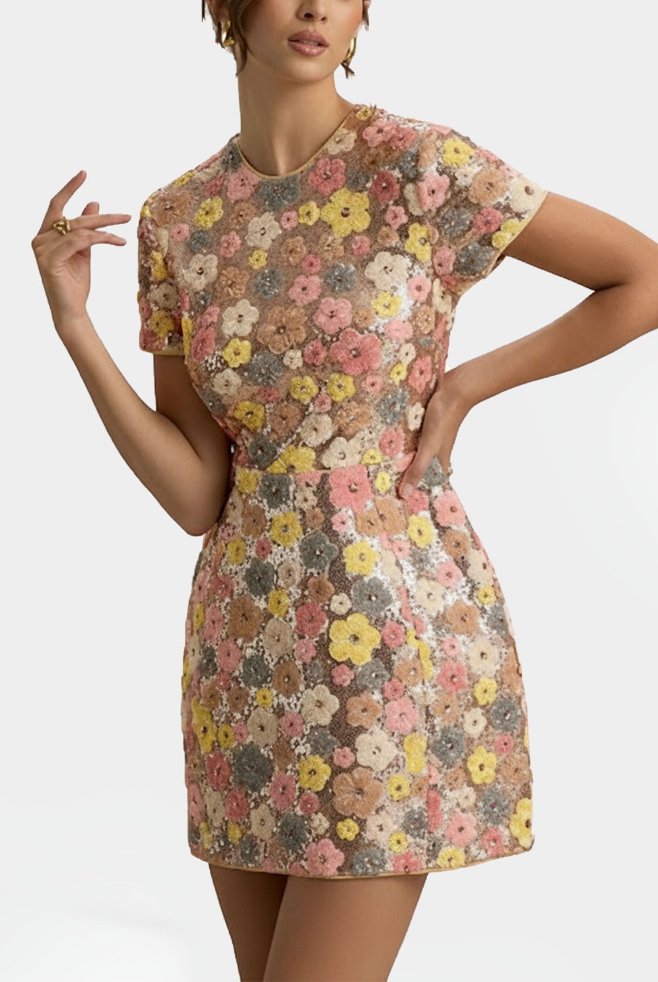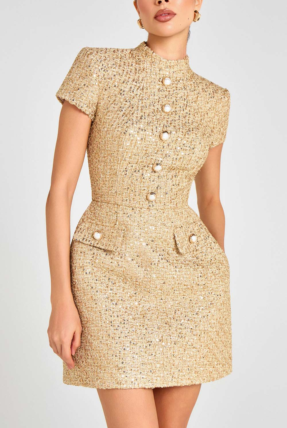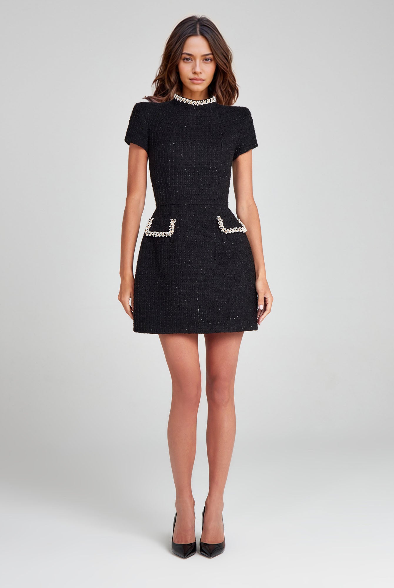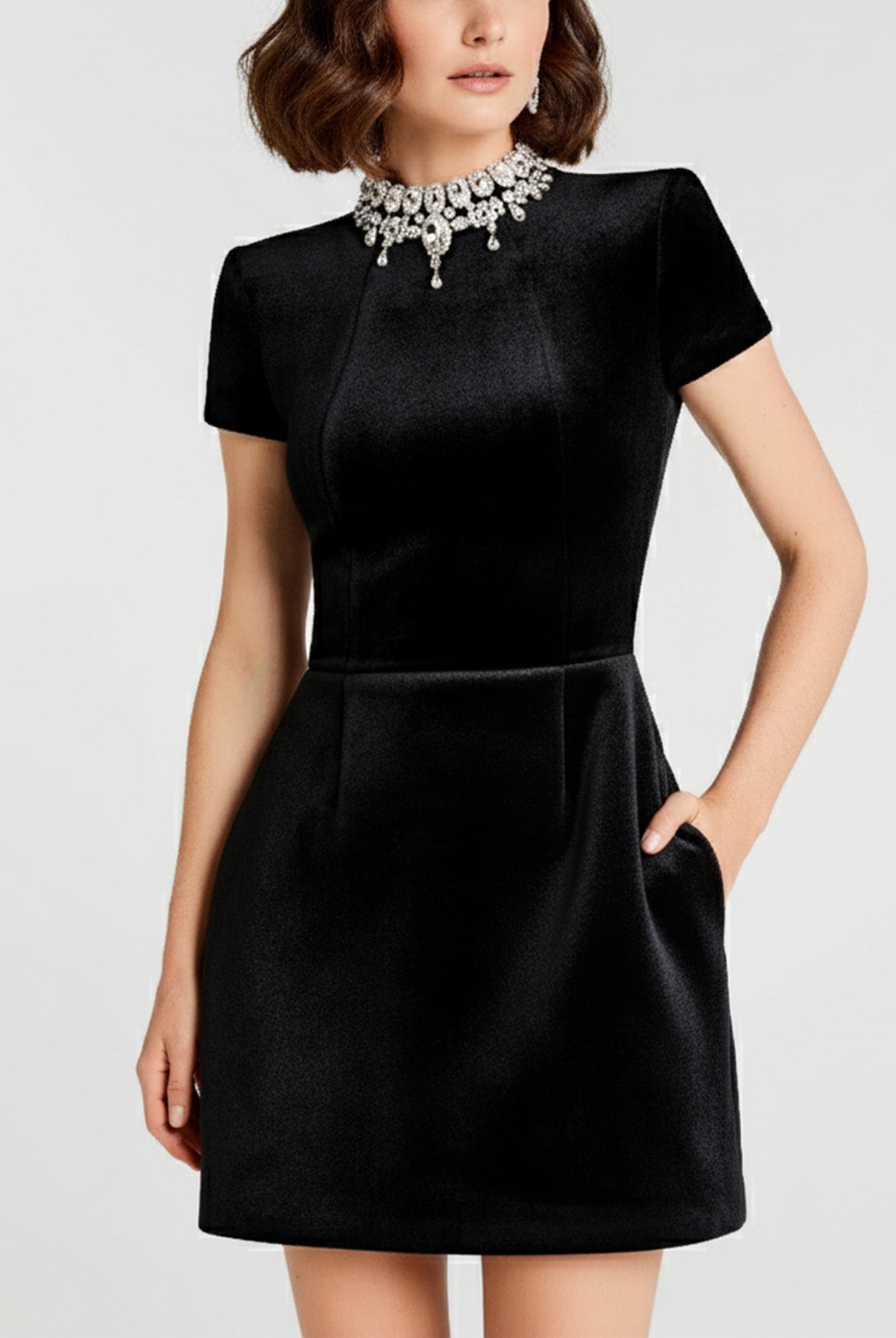 The Pink Pearl Trim Mini Dress brings playful elegance to your wardrobe. Designed with a flattering A-line silhouette, short sleeves, and pearl-embellished pocket details, it perfectly blends modern charm with timeless femininity.
