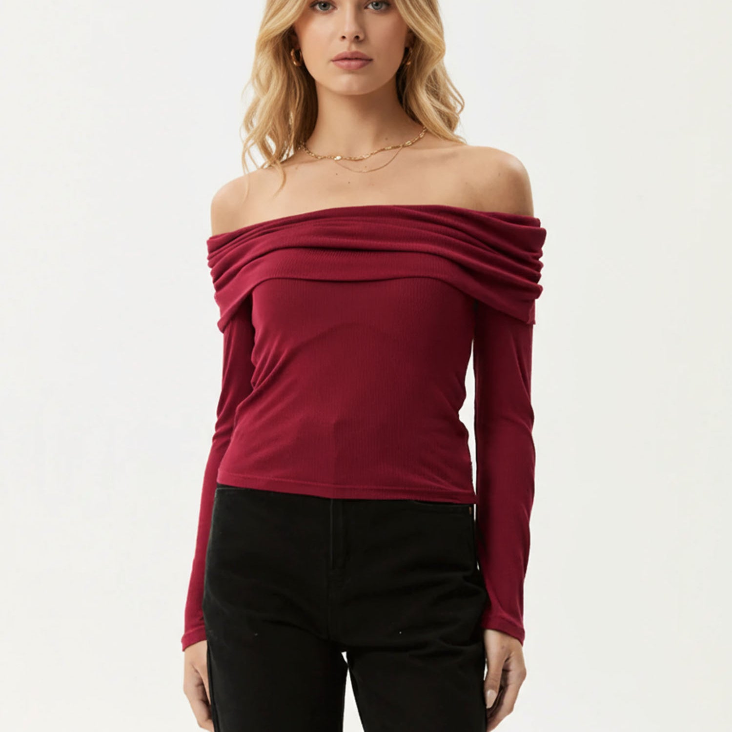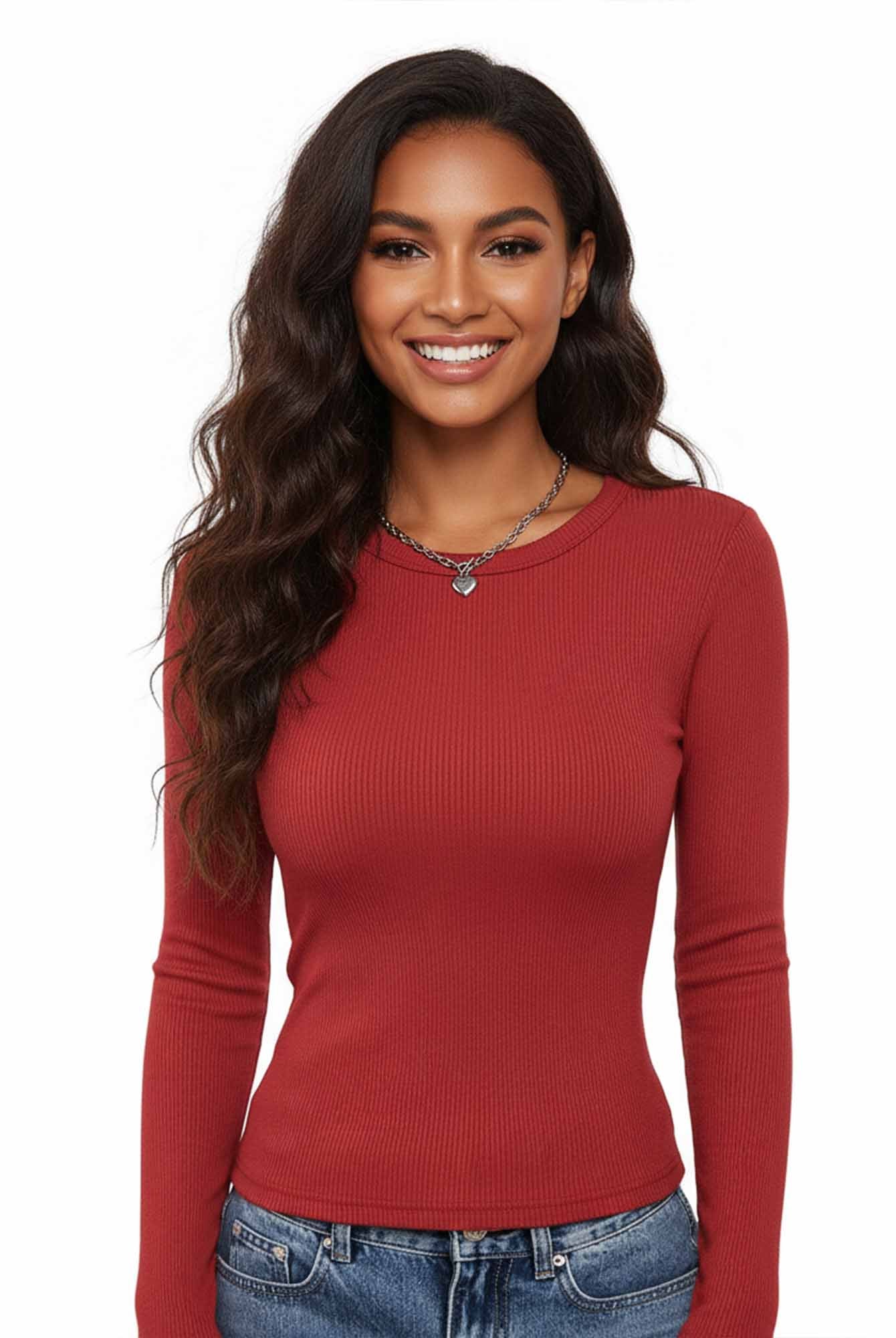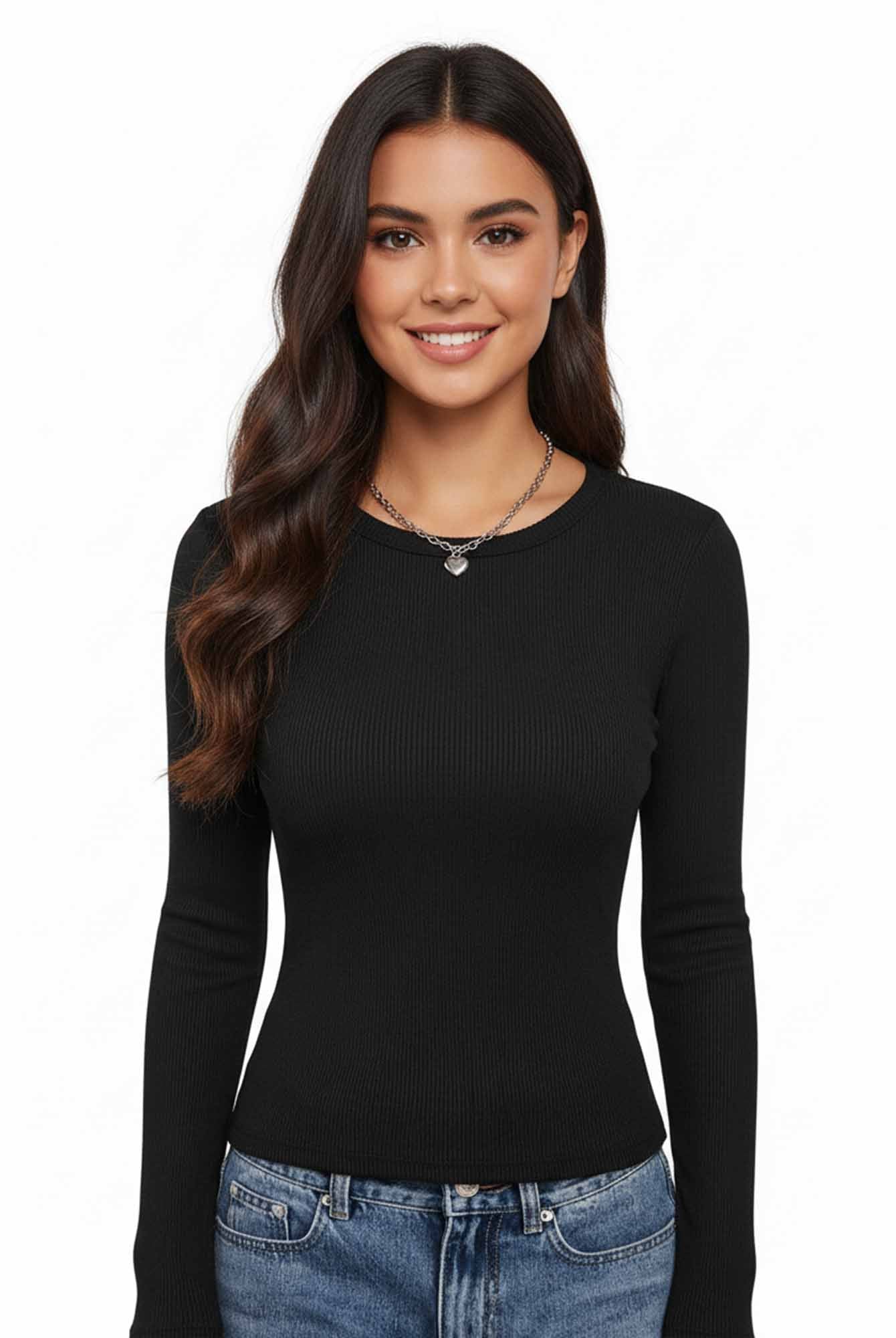 Ribbed Long-Sleeve Fitted Tee