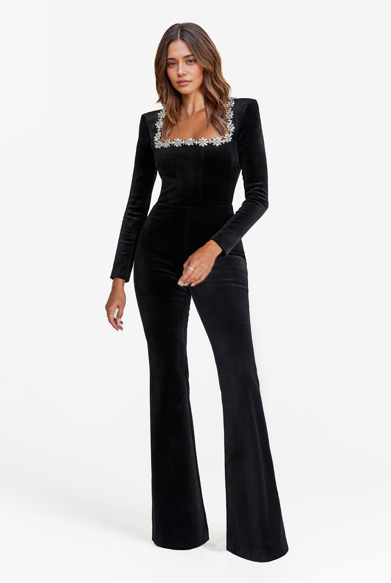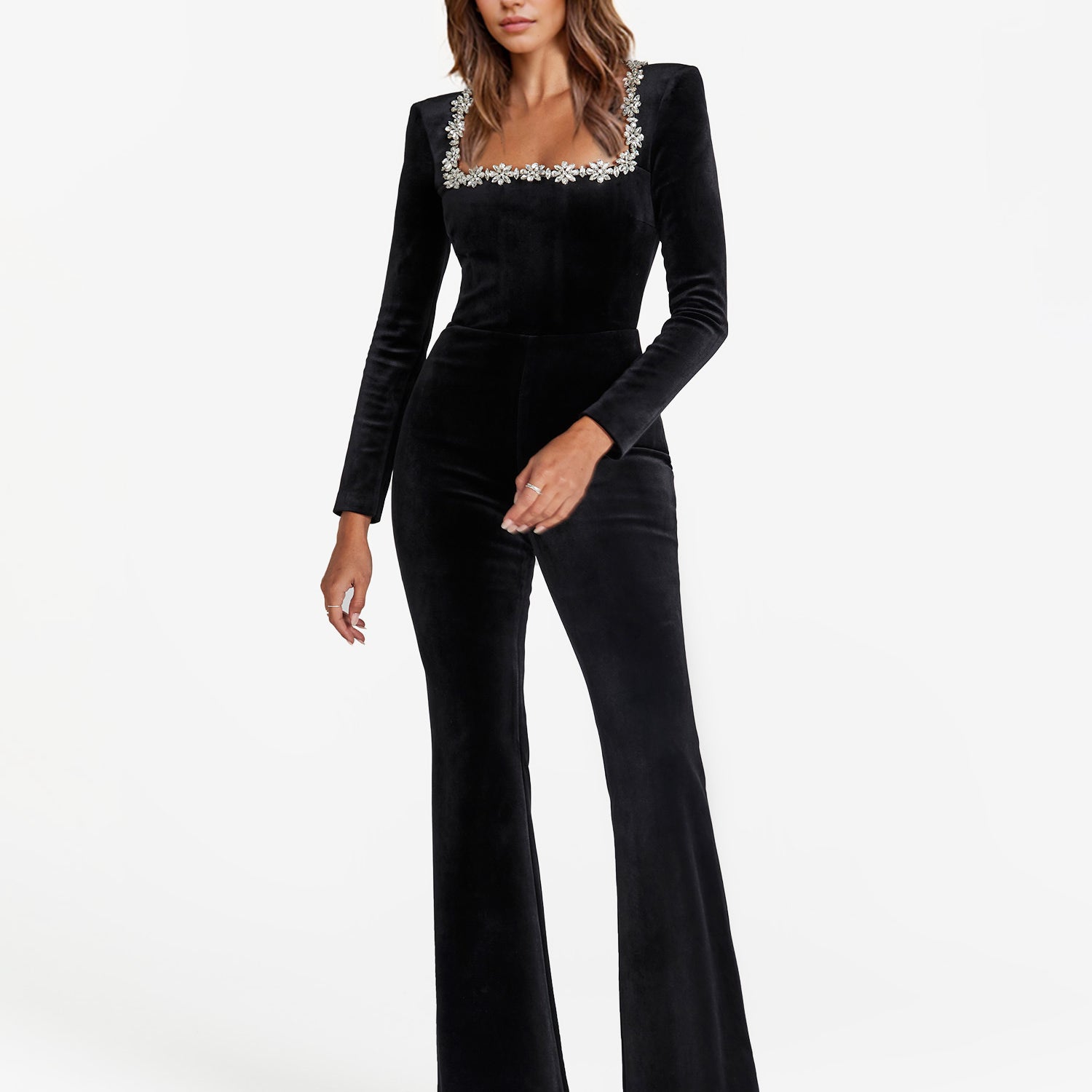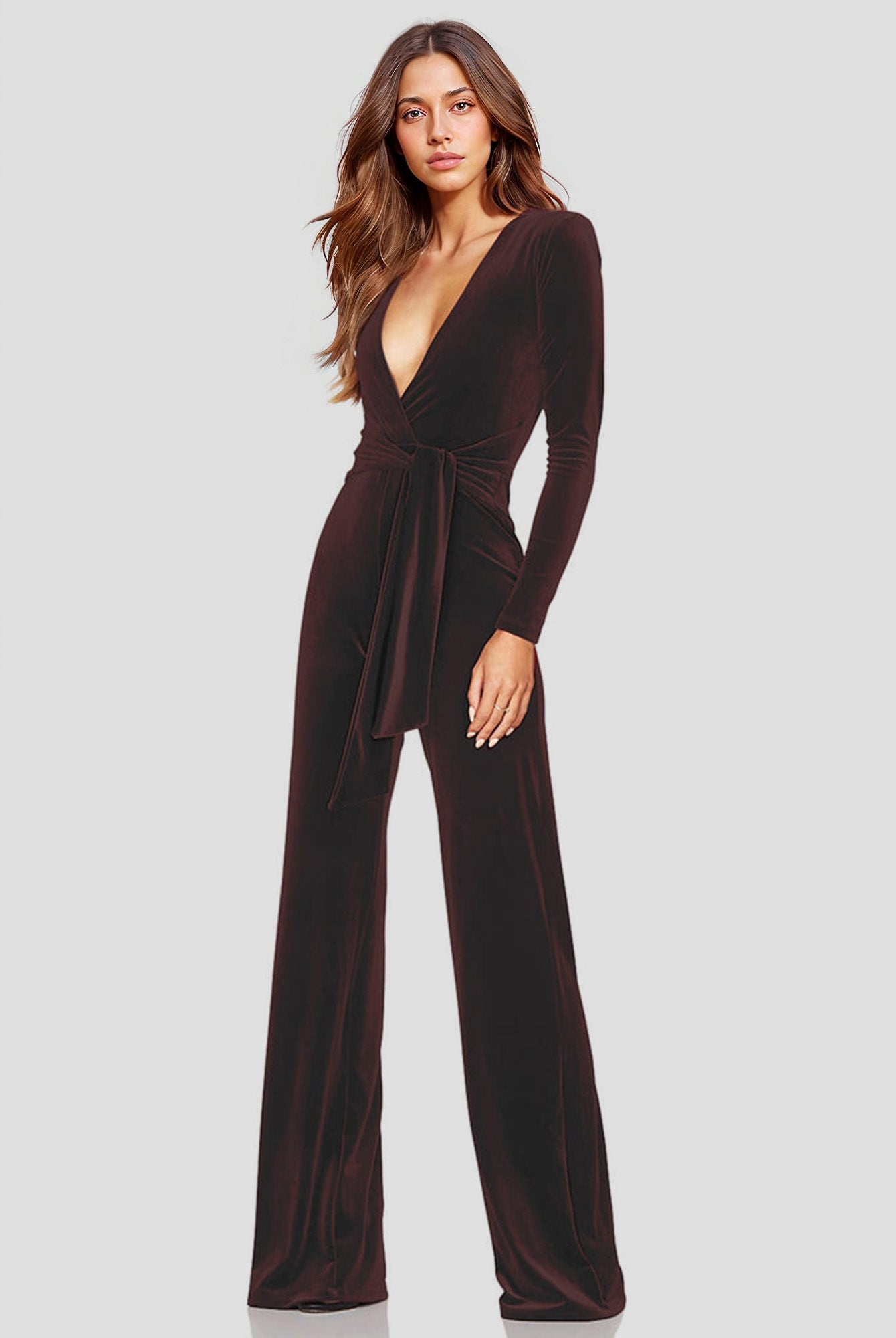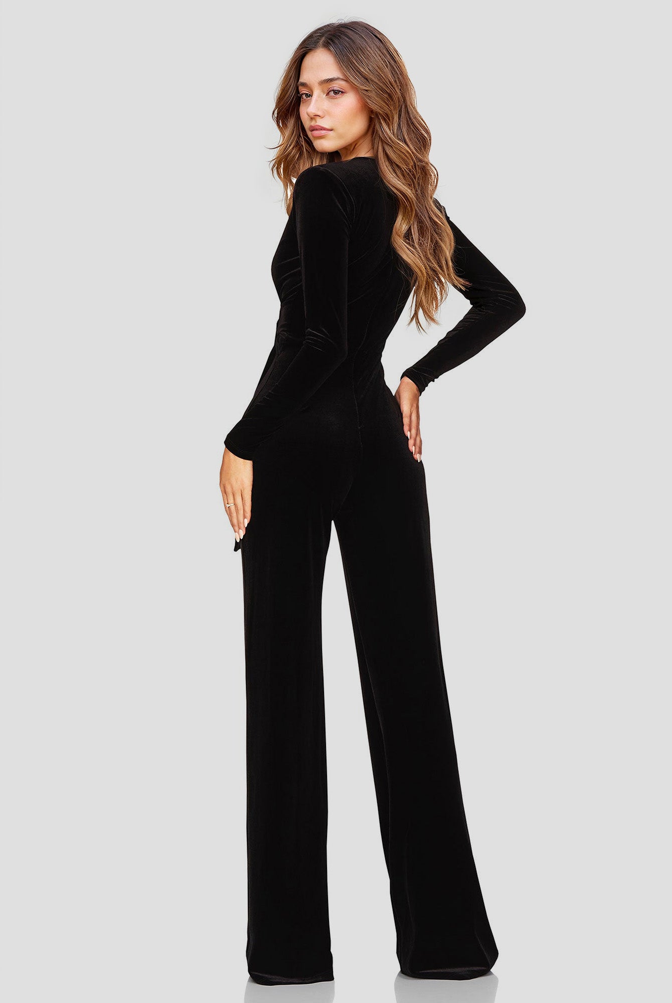 V-Neck Velvet Jumpsuit