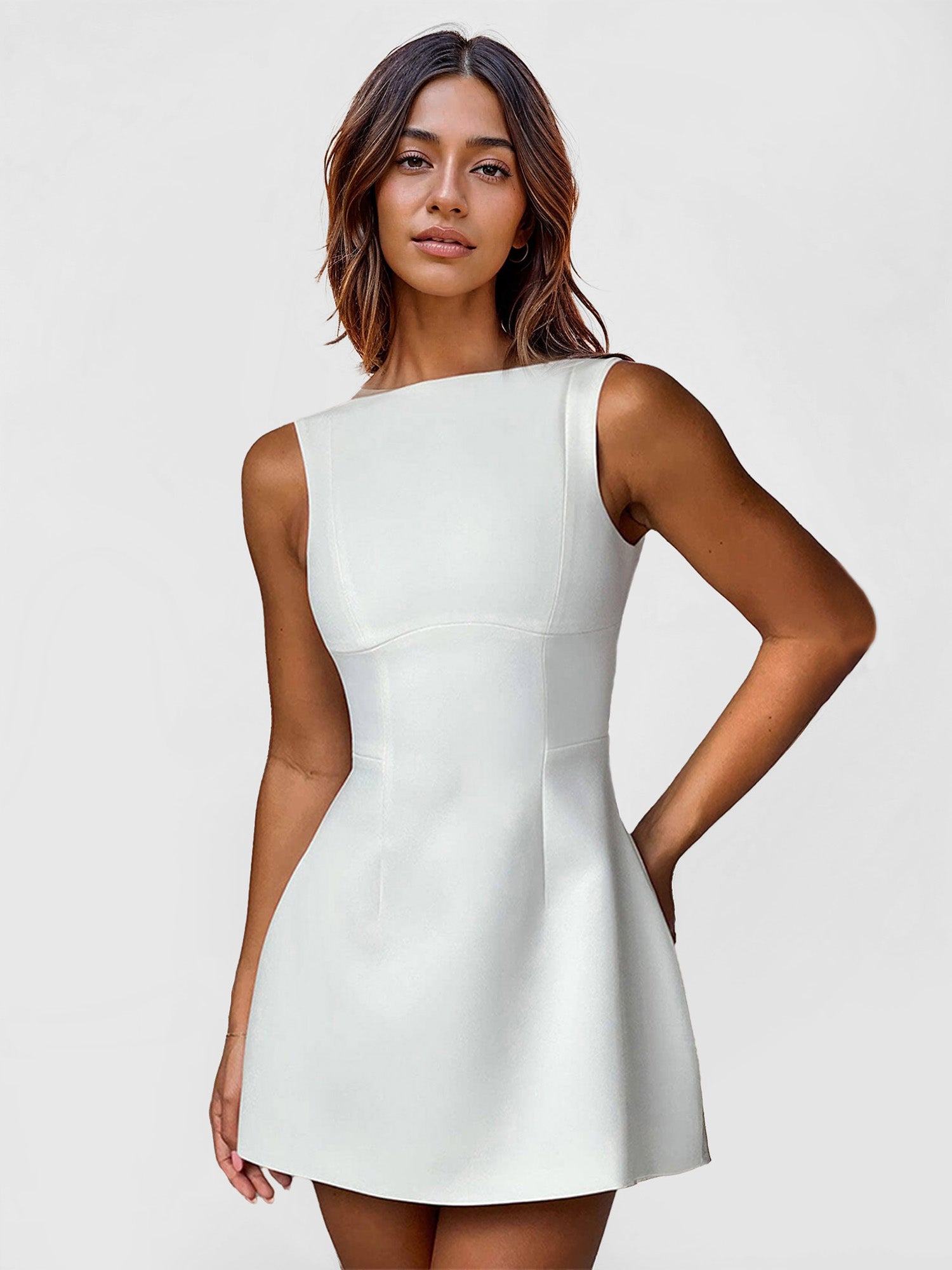 The Simple A-Line Mini Dress is perfect for a clean, minimalist look. Its flattering A-line silhouette and smooth finish make it versatile for any occasion, from a casual outing to a chic event.