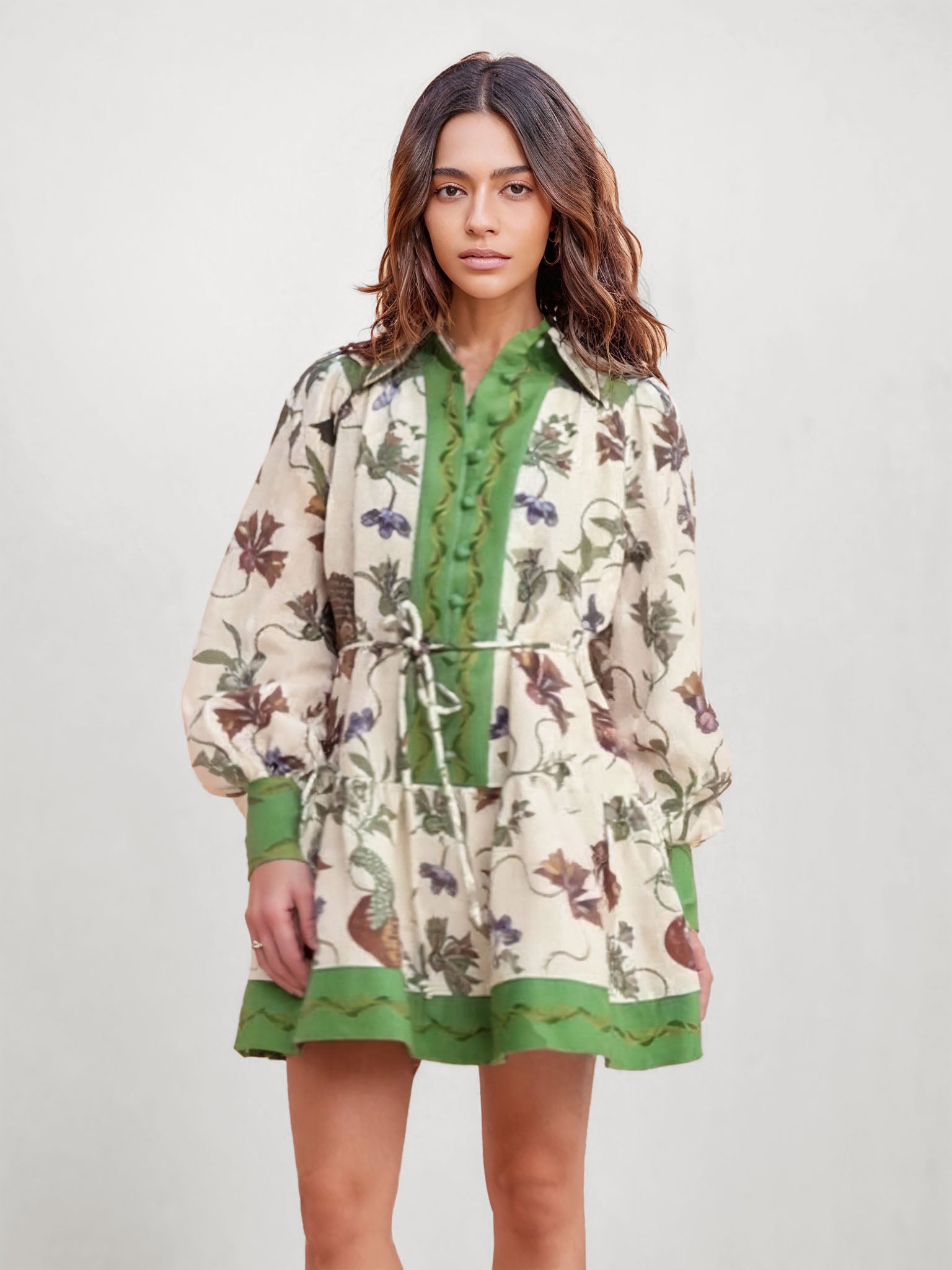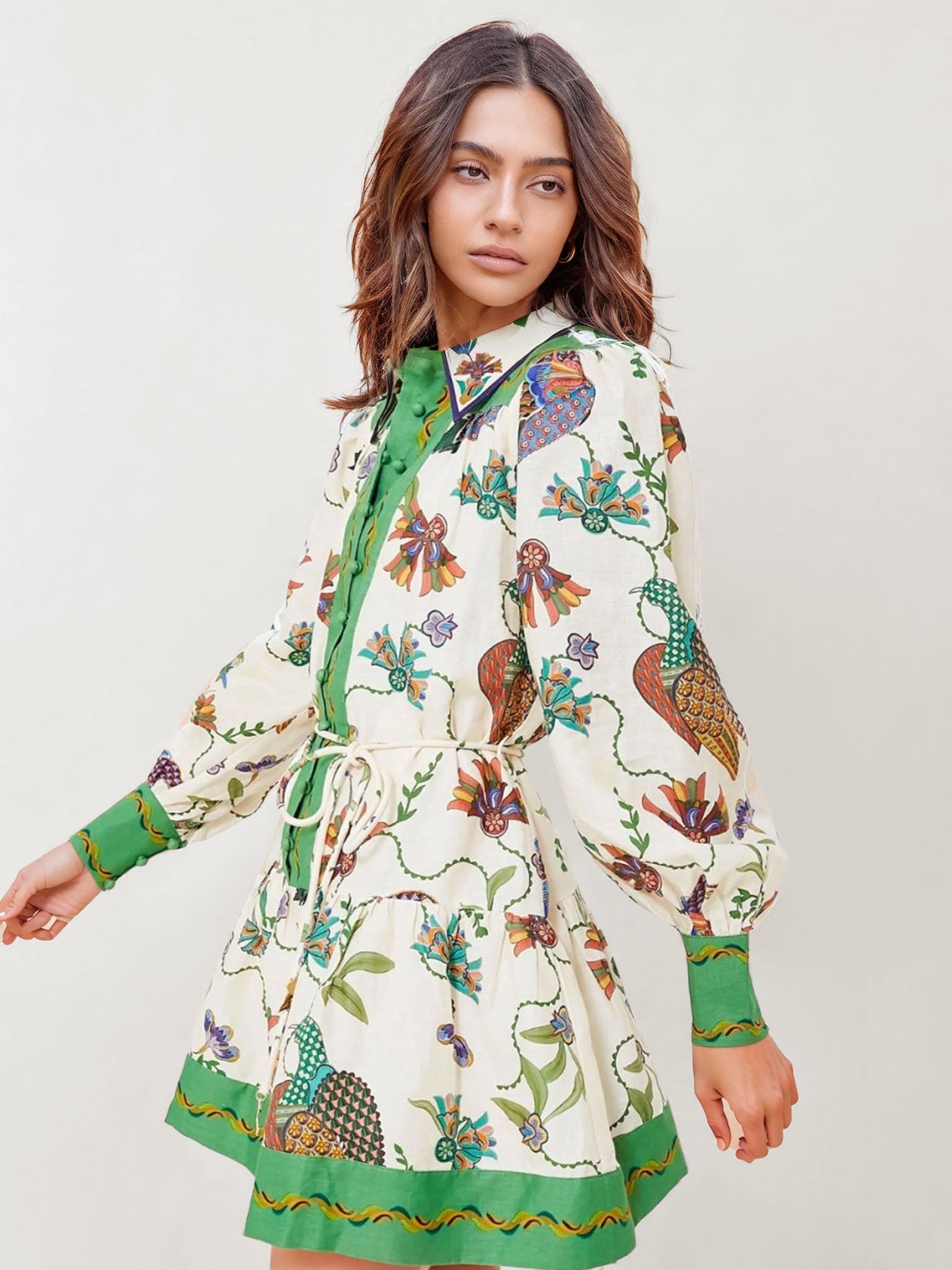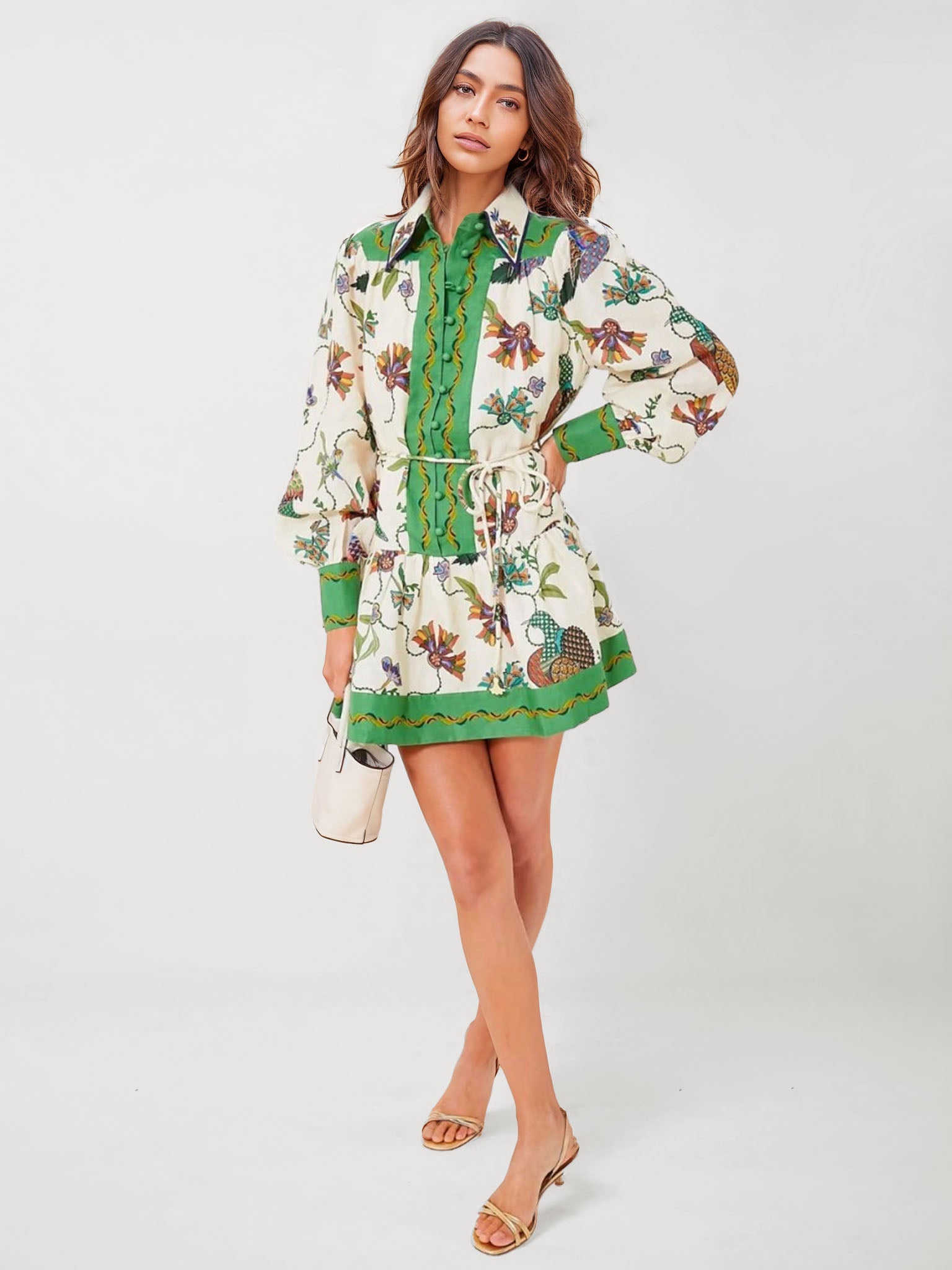 Vintage Inspired Floral Puff Sleeve Mini Dress